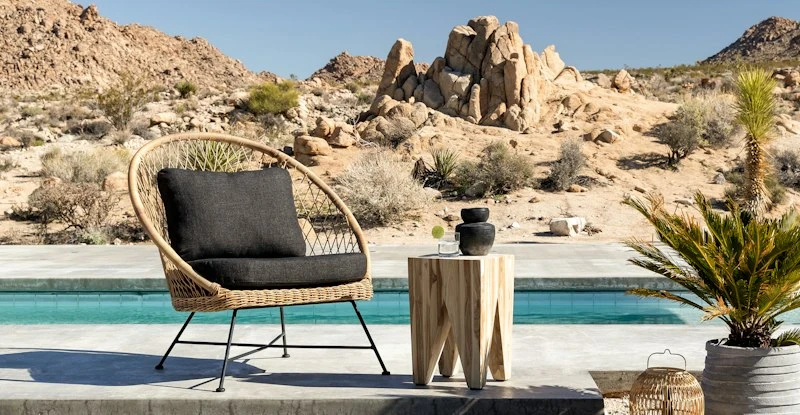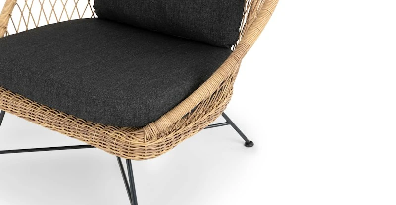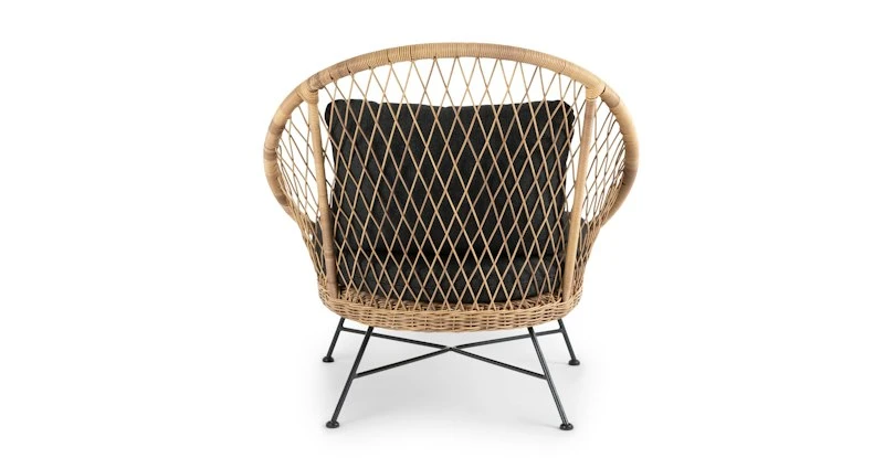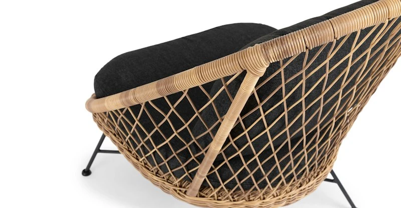 Tropical and stately, the Aeri lounge chair looks great sitting on your deck or as the star of your backyard. Woven from matte resin wicker, set on a black metal frame, and topped with a comfy cushion, the Aeri is here to make your space feel bohemian and loungey.