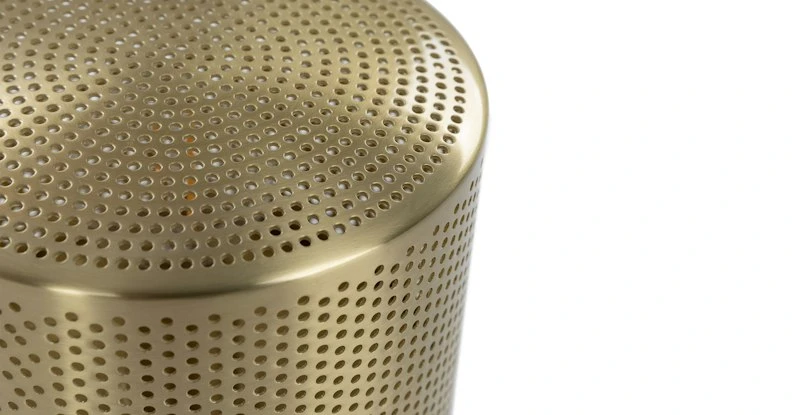 - Enhance your decor with the Perforated Brass Table Lamp. Its intricate perforated design adds a touch of sophistication to any room, making it a perfect centerpiece for your living room, bedroom, or office.