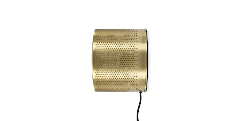 The Perforate lamp looks great sitting atop a side table, or hung as a sconce on the wall. The punched-metal shade casts twinkly, subtle lights across your room. Extra shine provided by the metal finish, and neatly tied together with a fabric-wrapped cord.