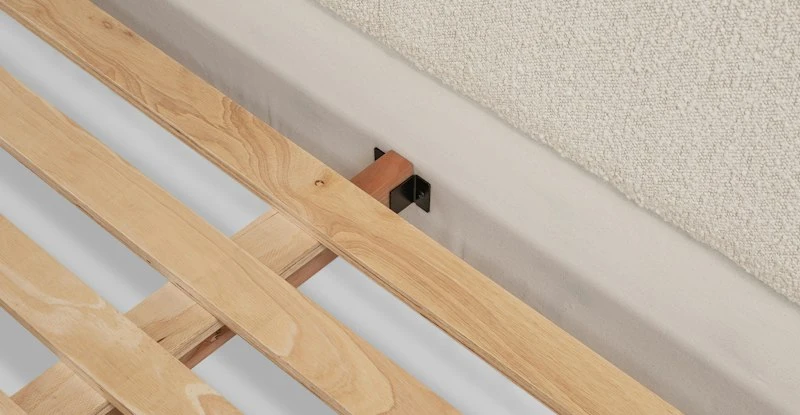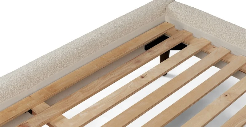 - The minimalist yet timeless design of the Kayra Ivory Bouclé Queen Bed complements any bedroom style, from modern to classic, adding a touch of sophistication to your space.