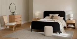 You know those big teddy bears you cuddled with as a kid? The Kayra is like that, except less weird to curl into as an adult. Something about its super plush bouclé fabric, sculpted headboard, and curvy proportions make this bed the stuff that childhood dreams are made of.