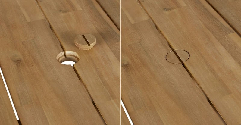 Family plus. Having the in-laws for dinner al fresco? Neighbors popped by for a friendly drink? The Latta table for 6 is ready for those surprise drop-ins. Supported by a powder-coated aluminum frame, topped with slatted acacia wood, and complete with a center-hole for an umbrella. Now the only thing to worry about is whether those guests are welcome ones.
