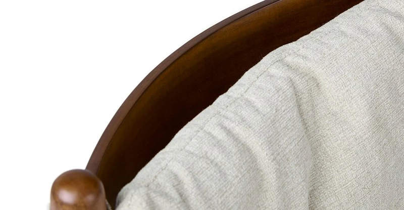 The Lento Chalk Gray Lounge Chair features a rich, walnut-stained wood frame and comfortable padded seat. The curved silhouette adds suave, while the light and airy fabric keeps the look grounded. Imagine it in a peaceful corner of your bedroom with the sunlight streaming in, or as a lux place to tie your shoes in the morning. Wherever you need it, the Lento fits right in.