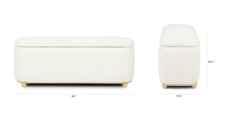 Maribo Ivory Bouclé 48″ Storage Ottoman – Elegant Sofa Footrest with Hidden Compartment