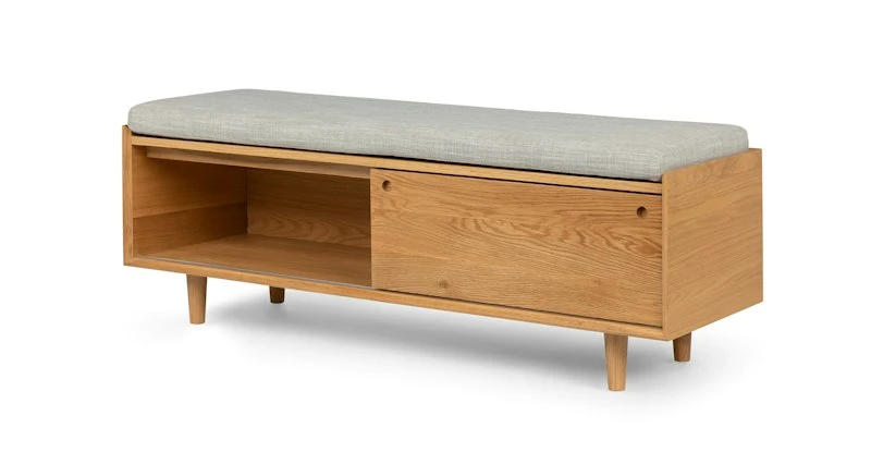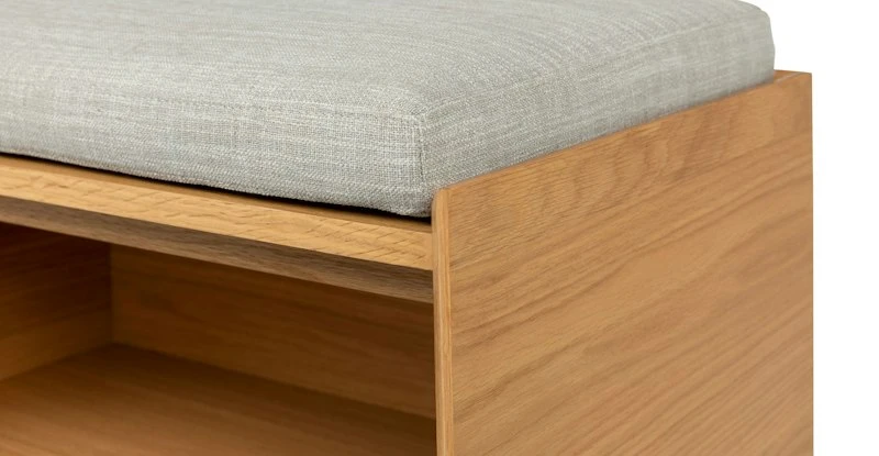 - Enhance your bedroom decor with the Nederin Rain Cloud Gray Oak Bench. Its sleek design and durable construction make it a perfect addition to any room.