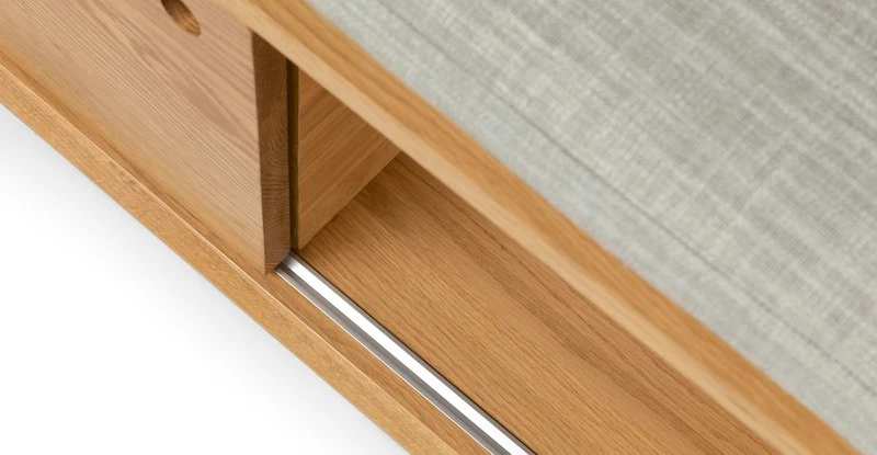 Put it away, put it away, put it away, now. The Nederin bench is the beautiful workhorse that your foyer or mudroom deserves. A broad storage compartment is accessed by a sliding solid wood panel so you can show-off your shoe collection at your leisure. Topped with a cozy foam cushion, the Nederin bench can also act as extra seating, in a pinch.